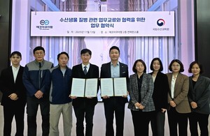 [농수축산신문=김동호 기자]국립수산과학원(원장 최용석)은 지난 13일 ‘부산 스마트양식 클러스터’에 위치한 에코아쿠아팜(대표 진효상) 회의실에서 ‘대서양연어 및 수산생물 질병 관리 교류를 위한 업무협약(MOU)’을 체결했다고 밝혔다.이번 업무협약은 국내 스마트양식 클러스터 활성화와 질병관리를 통한 대서양연어 양식산업 발전을 위해 추진됐다. 주요 내용은 대서양연어를 포함한 수산생물 질병 연구와 기술개발 협력, 정기적인 학술정보 공유 등이다.수과원은 2023년부터 국내 대서양연어 질병 연구와 맞춤형 예방백신 개발에 주력하고 있어 향후