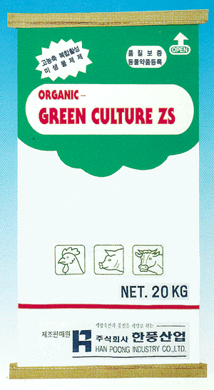 `오가닉-그린컬쳐 ZS''는 선별된 미생물을 각각 배양후 혼합해 미생물이 잘 자란다. 또한 대사산물을 대량분비할 수 있는 배지를 완전증기 멸균하고 미생물별 최적의 온도, 습도, pH를 자동조절할 수 있는 일본 하내식 전자동 고체 발효기를 사용, 무균상태에서 발효시킨후 저온건조법으로 생산한 다기능 복합미생물제제이다.