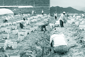 특히 하우스감자는 칼라박스를 개발하고, `조마 장바우 감자''란 공동상표를 부착해 출하하고 있다.