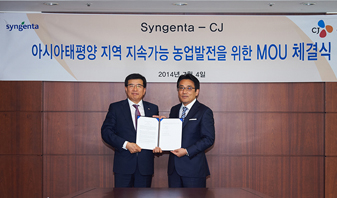 신젠타는 CJ그룹과 지난 4일 CJ그룹 남산 본사에서 ‘아시아태평양 지역에서의 지속가능한 농업 발전을 위한 양해각서(MOU)’를 체결했다.