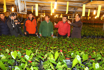 이동필 농림축산식품부 장관은 지난 7일 지열냉난방시설이 설치된 경기도 용인시 화훼온실과 태양광 발전시설을 설치한 강원도 횡성군 낙농축사를 방문했다. 사진은 지열냉난방시설을 설치한 용인 샤론농원을 방문한 이 장관<사진 오른쪽에서 두 번 째>이 농장주로부터 설명을 듣고 있는 모습.