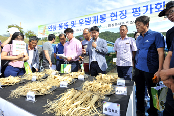 농촌진흥청은 고려인삼 품종의 우수성을 알리고 앞으로 품종이 될 계통을 평가 받기 위한 현장평가회를 지난 16일 충북 음성소재 인삼특작부에서 개최했다.