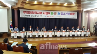 ‘부정청탁 및 금품 등 수수의 금지에 관한 법률’(일명 김영란법)이 시행되면 농업계는 직격탄을 맞는 만큼 적용대상에서 농축수산물을 제외시키고 기준 가액을 상향해야 한다는데 의견이 모아졌다.