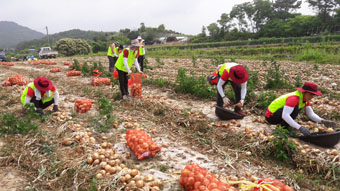 ㈜농우바이오는 양파수확 성수기를 맞아 일손이 부족한 농가를 돕는 농촌봉사활동을 실시했다.