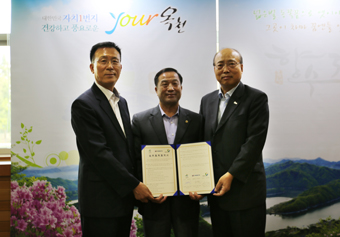 국제종합기계는 최근 충북 옥천군청에서 지역산업 발전을 위한 기술지원 업무 추진을 위해 남영준 국제종합기계 대표와 김영만 옥천군수, 남창현 (재)충북테크노파크 원장이 함께 협력 업무를 규정한 협약서에 서명했다고 밝혔다.