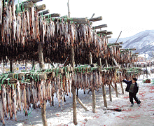 며칠째 봄날같던 날씨가 다시 추워지자 황태덕장이 바빠졌다. 주렁주렁 매달린 명태가 신기한지 덕장을 찾은 한 어린이가 유심히 살펴보고 있다. 횡계=엄익복 다른기사 보기 저작권자 © 농수축산신문 무단전재, 재배포 및 AI학습 이용 금지 당신만 안 본 뉴스 [AFL칼럼] ASF 백신 개발, ‘K-방역’의 새 지평 열까 서울 영등포농협 사회공헌실천재단, '가정의 달 이벤트' 경품 증정식 개최 예산군, ‘힐링·건강·나눔’으로 주민 삶의 질 높인다 영등포농협 사회공헌실천재단, 동작구 '사랑의 온도탑' 제막식 '1호 주자'로 나서 지역사회 온기 확산 물꼬 터 차기 농협 축산경제 대표이사 선거 3파전 영농형태양광, 임차농 보호장치 마련을…정부, 투기 방지법 ‘밑그림’ [Issue+] 2026 국제곡물시장 전망 [AFL칼럼] ASF 백신 개발, ‘K-방역’의 새 지평 열까 댓글삭제 삭제한 댓글은 다시 복구할 수 없습니다. 그래도 삭제하시겠습니까? 비밀번호 닫기 기사 댓글 0 댓글 접기 로그인 후 이용 가능합니다. 댓글 내용입력 비회원 로그인 이름 비밀번호 댓글 내용입력 댓글쓰기 계정을 선택하시면 로그인·계정인증을 통해 댓글을 남기실 수 있습니다. 회원 로그인 비회원 글쓰기 이름 비밀번호 자동등록방지 로그인 옵션 창닫기 주요기사 숭례문 앞에 모인 ‘유령농부’들…유기농업 2배 확대 결의 플랜티팜, 사우디 성지 메디나에 K-스마트팜 구축한다 산림경영지도 우수사례 최우수상에 이이섭 상주시산림조합 지도원 세포배양 인조축산물, 안전성 문제 여전히 화두 [Issue+] 지속가능한 농업은 우리의 사명...ESG 경영 발굴·확산 ‘주목’ [농수축산신문-수협중앙회 공동기획] 착용海요 구명조끼 안전海요 우리바다 ⑦ 제주시 이보라 조일호 선장