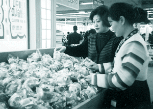 농협 양재 하나로클럽의 경우 지난달부터 벌크형식으로 안심사과를 낱개로 판매하고 있다. 가격은 개당 950원. 판매 개시후 하루 평균 700개가량, 주말에는 2000개가량 판매되고 있다.
