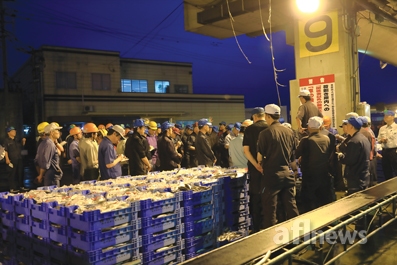 첫 번째 어획물에 대한 경매가 끝나자 중도매인들은 다른 어획물의 경매를 위해 옆의 어획물로 이동했고, 지게차는 경매를 마친 어획물들을 저온시설로 부지런히 옮겼다.