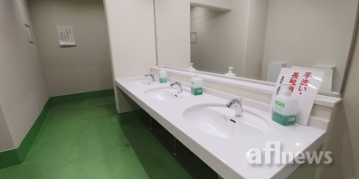 시장에서 볼 수 있었던 또다른 특이점은 양륙·선별·경매가 이뤄지는 장소로 진출입하는 곳에 소독조와 세면대였다.