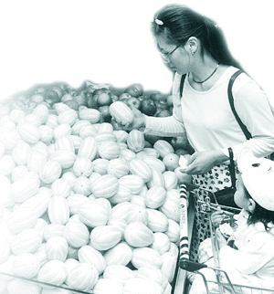 참외가 이번주부터 시작된 백화점 세일 등으로 소비가 증가했으나 산지출하물량의 증가로 가격은 내림세다.