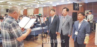 이날 한우 농가들은 △청정축산 구축 선도 △소비자에게 안전하고 위생적인 축산물의 공급 △가축질병 청정화 △안정적 한우산업을 통한 충북 경제 발전 선도 등의 내용을 담은 한우산업 발전 결의문을 제창했다.
