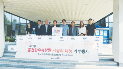 지난 6월 25일 강원 홍천군청 앞에서는 나종구 한우사랑말 대표와 허필홍 홍천군수를 비롯해 관계자들이 참석한 가운데 소불고기 기부 행사가 진행됐다.
