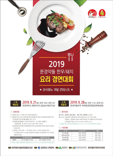 문경약돌축산물 융복합 명품화 사업단(이하 사업단)은 지난 26일 ‘2019 문경약돌 한우·돼지 요리 경연대회-외식메뉴 개발 콘테스트’의 참가자 모집을 시작했다.