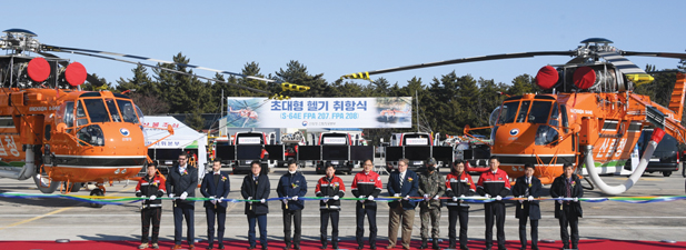 산림청은 지난 5일 강릉산림항공관리소에서 초대형헬기 2대 추가 도입을 기념하는 취항식을 열었다. 산림청은 그간 1996년부터 지난해까지 고성·강릉·인제 등 강원 전 지역에서 발생한 대형 산불이 동해안 지역에 집중돼 있는 것에 대한 대책으로 초대형헬기 도입을 추진해 왔다.