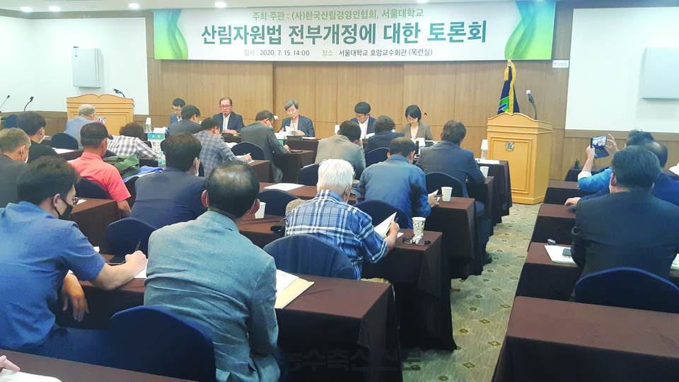 정주상 서울대 산림과학부 교수는 지난 15일 서울대학교 호암교수홀 목련실에서 한국산림경영인협회 주최로 열린 ‘산림자원법 전부개정에 대한 토론회’<사진>에서 이 같이 주장했다.