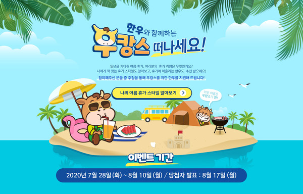 한우자조금관리위원회(위원장 민경천, 이하 한우자조금)가 여름 휴가철을 맞아 온라인 이벤트 ‘한우와 함께하는 우캉스 떠나세요!’를 진행한다.