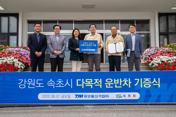 동양물산기업은 지난 7일 강원도 양양 하조대해수욕장과 속초시청에서 ‘다목적 운반차 기증식’ 을 가졌다.