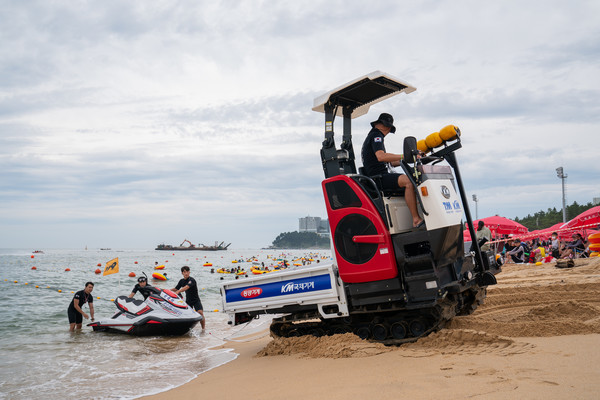현장에 있는 이상경 소방경에 따르면 ‘운반차는 인명 구조용 제트스키를 모래에서 바다로 신속하게 운영할 수 있어 큰 도움이 된다’고 말했다.
