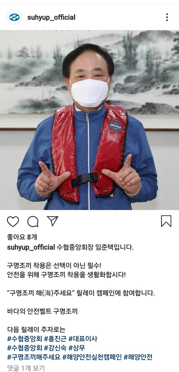 임준택 수협중앙회장은 지난 25일 ‘구명조끼 해(海)주세요’캠페인에 참여했다.