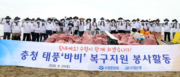수협 임직원들은 지난달 29 충남 서천에 위치한 월하성어촌계를 방문해 제8호 태풍 ‘바비(BAVI)’로 인해 유입된 해양쓰레기 수거 봉사활동에 나섰다.