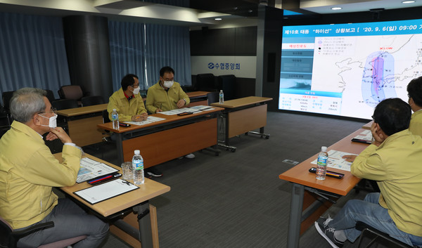 수협중앙회는 지난 6일 수협 안전조업상황실에서 제10호 태풍 ‘하이선’ 대응을 위한 비상대책본부 상황점검회의를 열고 태풍 대처상황을 점검했다.