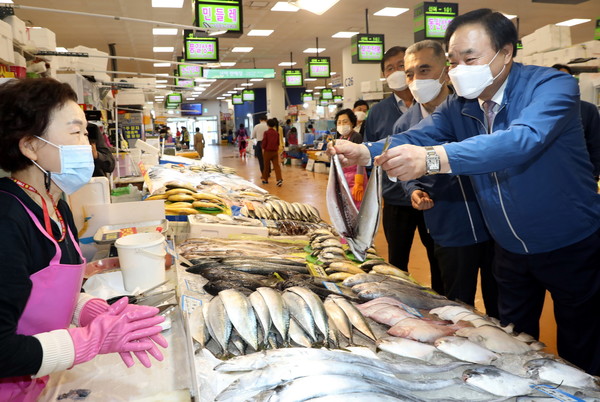 임준택 수협중앙회장은 지난 21일 노량진수산시장을 찾아 주요 수산물 수급 및 물가 동향을 점검했다.