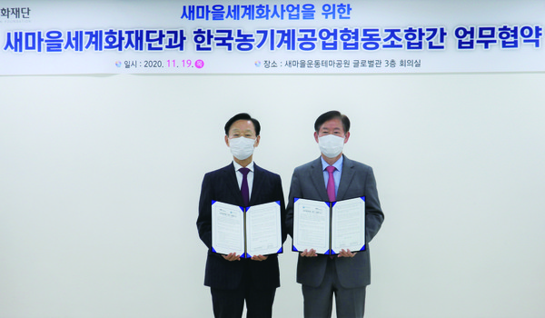 최근 구미 새마을운동테마공원 글로벌관에서 열린 협약식에서 김신길 농기계조합 이사장과 장동희 새마을세계화재단 대표이사는 새마을운동의 성공 경험을 기반으로 국제사회에 한국의 우수한 농업기계를 공급해 저개발국의 자립농업을 도모하는데 공동 노력을 기울이기로 했다.