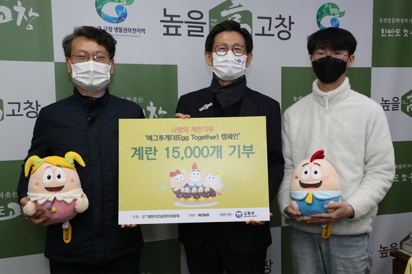 계란자조금관리위원회(위원장 김양길)는 지난 15일 전북 고창 소재 대산농장(대표 김정채)이 전북 고창군에 K-계란 1만5000개를 기부했다고 밝혔다.