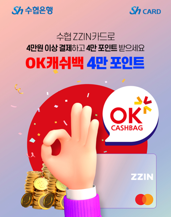 Sh수협은행은 SK플래닛과 손잡고 ‘ZZIN카드’ 이용 고객을 대상으로 OK캐쉬백 4만 포인트를 제공하는 특별 이벤트를 실시한다.
