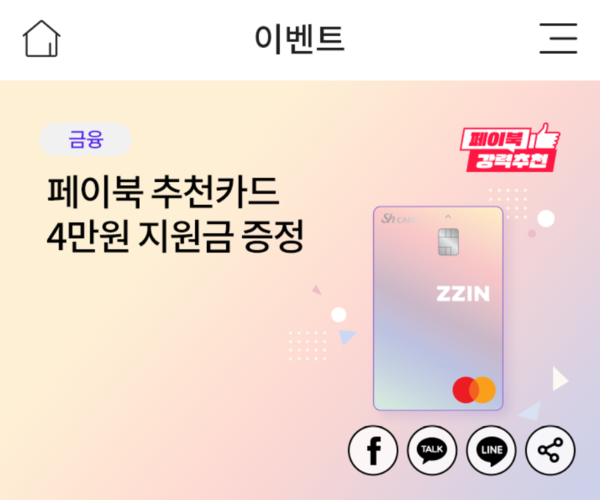 이벤트 기간 중 ZZIN카드 4만원 이상 사용하면 4만원 캐시백 제공