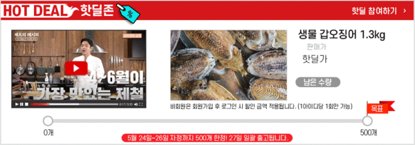한편 수협쇼핑은 국내산 수산물 소비를 촉진하기 위해 제철 수산물을 매주 1품목씩 선정해 한정 수량을 특별 할인 판매하는 ‘핫딜존’ 행사를 다음달 18일까지 진행하고 있다.