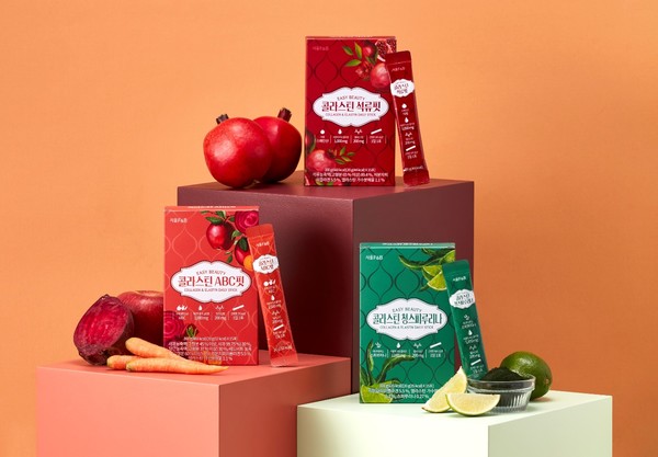 이번 신제품은 피부 건강에 도움을 주는 콜라겐과 엘라스틴이 포함됐으며 △콜라스틴 석류핏 △콜라스틴 ABC핏 △콜라스틴 청스피루리나로 구성됐다. 콜라스틴 3종 모두 1포(20g)당 콜라겐 1000mg과 엘라스틴 200mg이 함유돼 있다.
