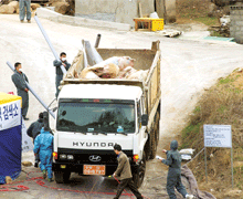 돼지콜레라가 전국적으로 발생한 가운데 경남 김해 돼지콜레라 발생농장에서 살처분된 돼지가 매립을 위해 트럭에 실려 나오고 있다. 김해=엄익복 다른기사 보기 저작권자 © 농수축산신문 무단전재, 재배포 및 AI학습 이용 금지 당신만 안 본 뉴스 [AFL칼럼] ASF 백신 개발, ‘K-방역’의 새 지평 열까 서울 영등포농협 사회공헌실천재단, '가정의 달 이벤트' 경품 증정식 개최 예산군, ‘힐링·건강·나눔’으로 주민 삶의 질 높인다 영등포농협 사회공헌실천재단, 동작구 '사랑의 온도탑' 제막식 '1호 주자'로 나서 지역사회 온기 확산 물꼬 터 차기 농협 축산경제 대표이사 선거 3파전 영농형태양광, 임차농 보호장치 마련을…정부, 투기 방지법 ‘밑그림’ [Issue+] 2026 국제곡물시장 전망 [AFL칼럼] ASF 백신 개발, ‘K-방역’의 새 지평 열까 댓글삭제 삭제한 댓글은 다시 복구할 수 없습니다. 그래도 삭제하시겠습니까? 비밀번호 닫기 기사 댓글 0 댓글 접기 로그인 후 이용 가능합니다. 댓글 내용입력 비회원 로그인 이름 비밀번호 댓글 내용입력 댓글쓰기 계정을 선택하시면 로그인·계정인증을 통해 댓글을 남기실 수 있습니다. 회원 로그인 비회원 글쓰기 이름 비밀번호 자동등록방지 로그인 옵션 창닫기 주요기사 숭례문 앞에 모인 ‘유령농부’들…유기농업 2배 확대 결의 플랜티팜, 사우디 성지 메디나에 K-스마트팜 구축한다 산림경영지도 우수사례 최우수상에 이이섭 상주시산림조합 지도원 세포배양 인조축산물, 안전성 문제 여전히 화두 [Issue+] 지속가능한 농업은 우리의 사명...ESG 경영 발굴·확산 ‘주목’ [농수축산신문-수협중앙회 공동기획] 착용海요 구명조끼 안전海요 우리바다 ⑦ 제주시 이보라 조일호 선장