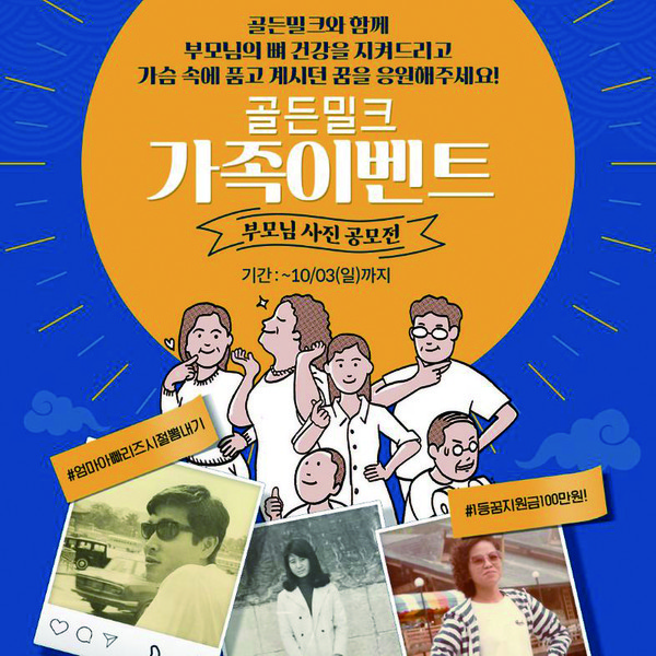 이번 이벤트는 오는 10월 3일까지 개인 사회관계망서비스(SNS)에 부모님 리즈 시절 사진과 사연을 게시하고 골든밀크 이벤트 페이지에 참가 신청을 하면 응모가 완료된다.