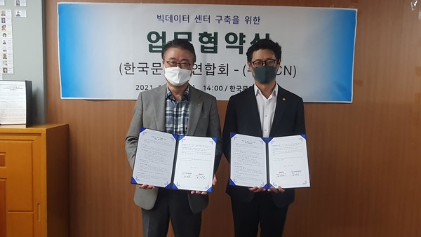 한국문화원연합회(회장 김태웅)는 13일 본사에서 지역 문화 빅데이터 센터 구축을 위해 디지털 컨버전스 기업인 ㈜피씨엔(대표 송광헌)과 업무협약(MOU)을 체결했다.