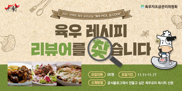이와 함께 ‘육우 레시피 리뷰어를 찾습니다’ 이벤트도 진행한다. 참여방법은 육우자조금관리위원회 공식블로그에서 만들고 싶은 육우요리 레시피를 신청하면 된다.