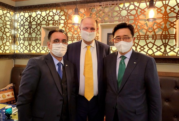김춘진 한국농수산식품유통공사(aT) 사장은 지난 28일 서울 이태원을 방문해 하짐 파흐미 주한이집트대사, 자카리야 알사아디 주한 오만대사, 유스프 샤리프조다 주한 타지키스탄대사, 찌룽 보톰랑세이 주한 캄보디아대사, 아쌀 알-탈 주한 요르단 대리대사를 만나 올해 사상 최초 대한민국 농수산식품 수출 100억 달러 달성을 함께 기념하고 축하하는 시간을 가졌다.