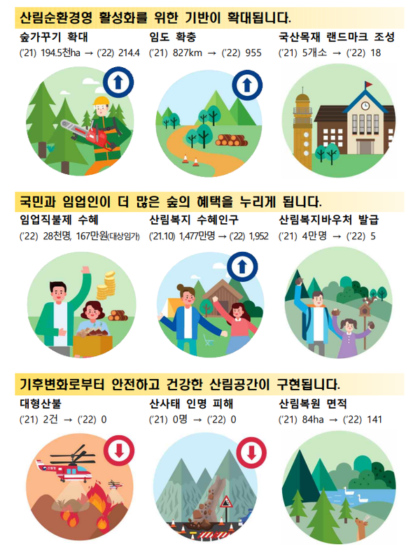 이는 우리 숲이 수확 가능한 숲으로 성장하면서 임업경영이 가능해졌을 뿐 아니라 산림자원을 다양하게 활용하려는 국민 수요가 높아졌고 기후변화 대응을 위한 산림의 역할이 많아진 데 따른 판단이다.