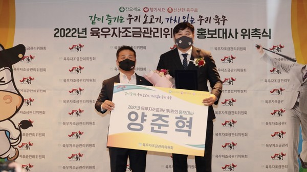 육우자조금은 25일 서울 양재 L타워에서 양준혁 씨를 지난해에 이어 올해도 홍보대사로 선정하고 홍보대사 위촉식을 진행했다고 밝혔다.