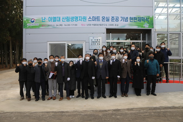 이날 행사에는 준공식 외에도 스마트 온실을 이용한 난·아열대 산림생명자원의 증식과 활용기술 개발을 논의하며 기후위기 극복을 위한 새로운 탄소흡수원으로 활용하기 위한 연구에 다양한 의견을 나누는 시간도 가졌다.