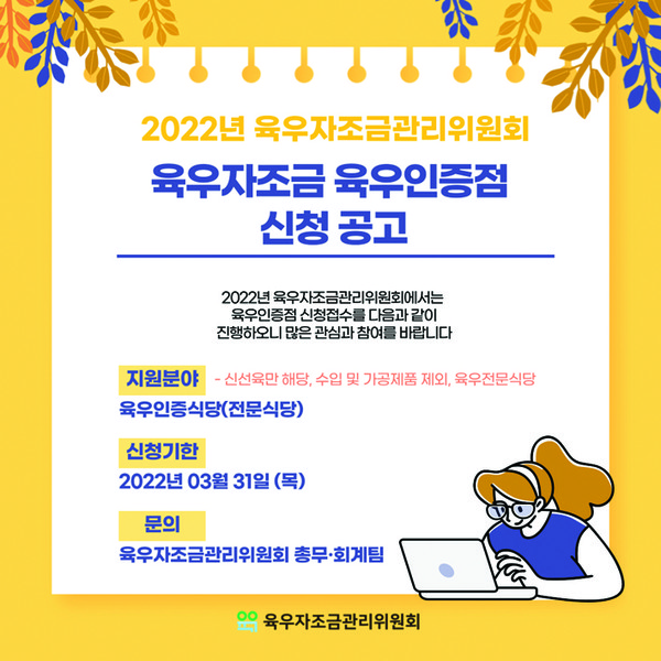 이번 사업에 참여를 희망하는 업체는 오는 3월 31일까지 육우자조금으로 육우인증식당 신청서를 제출하면 된다. 자세한 내용과 신청서 서식은 육우자조금 공식 홈페이지를 통해 확인할 수 있다.