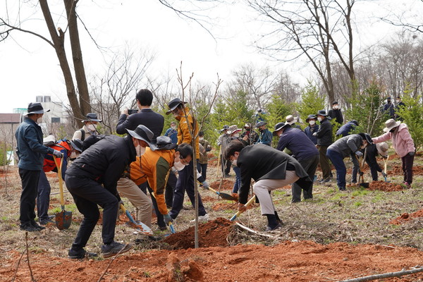 먼저 이날 오전에는 경기 화성시 소재 상신도시숲에서 최병암 산림청장, 정현찬 농어업농어촌특별위원회 위원장, 윤순진 탄소중립위원회 위원장, 최창호 산림조합중앙회장 등 임업 협·단체장 등 100여명이 참석한 가운데 나무 심기 행사를 했다.