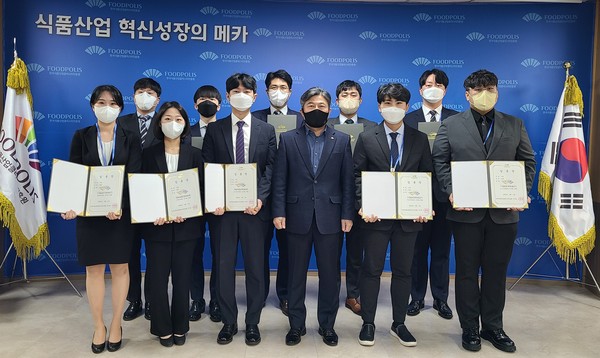 한국식품산업클러스터진흥원은 지난 4일 국가식품클러스터를 ‘식품산업 혁신성장의 메카’로 조성할 유능한 인재 14명을 올해 제1차 상반기 공개채용을 통해 채용하고 임용식을 가졌다.