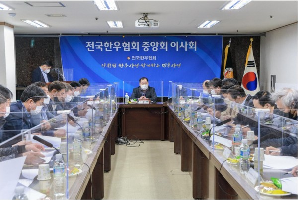 전국한우협회는 지난 4일 서울 서초동 소재 축산회관 대회의실에서 2차 긴급 이사회<사진>를 개최하고 사료가격 안정화 방안 등 현안을 논의했다.