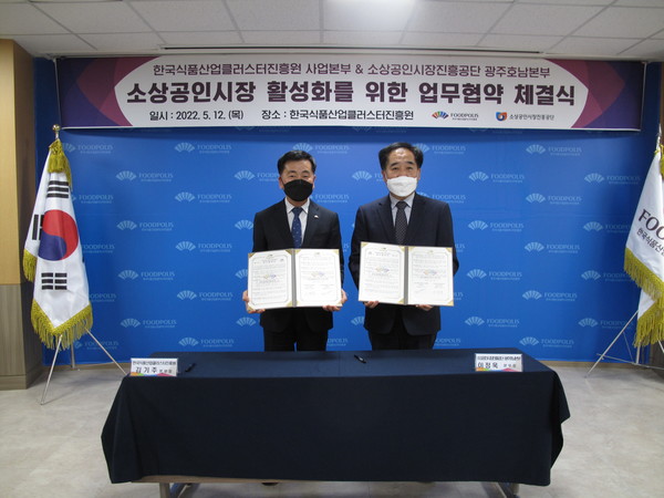 한국식품산업클러스터진흥원 사업본부는 지난 12일 소상공인시장진흥공단 광주호남본부(이하 소진공)와 전통시장·소상공인 지원을 위한 업무협약(MOU)을 체결했다.