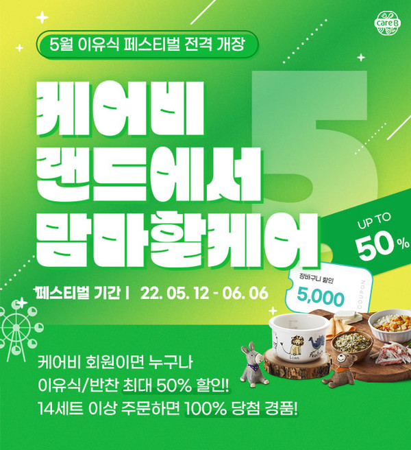남양유업의 영양 맞춤 배달 이유식 브랜드 케어비(CareB)가 오는 6월 6일까지 할인 프로모션을 진행한다.