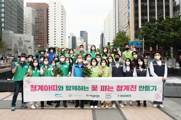 지난 9일 ‘청계아띠, 꽃 피는 청계천 만들기’에는 대상, 세븐일레븐, 서민금융진흥원, 예금보험공사 등 4개의 공공기관과 민간기업 임직원 30여 명이 참여했다. 참여 기관은 청계광장에 마련된 화단 16개에 화초를 심는 등 환경 활동을 진행했다.