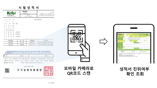 기존 진흥원에서 발급하는 성적서는 발급번호와 식별번호를 통해서만 진위여부를 확인할 수 있었으나 이번에 도입한 모바일 QR코드 서비스로 빠르고 편리하게 진위여부를 확인할 수 있어 성적서 위·변조 위험에 대한 사전예방을 강화할 수 있게 됐다.