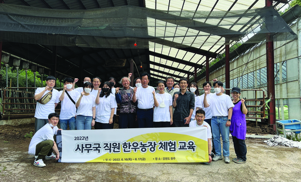 한우자조금관리위원회 사무국 전직원이 한우농장에서의 실습을 통해 한우산업의 이해도를 높이고 농가 의견을 청취하는 시간을 마련했다.