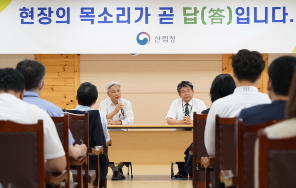 이번 산림 소통의 시간에는 최무열 한국임업인총연합회장과 박정희 한국산림경영인협회장을 초청해 현장 임업인과 산주들이 겪는 애로사항과 요구사항 등에 대해 경청했다.